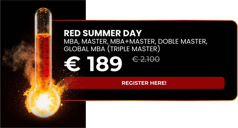 This is an ultimatum! This July 31st is Red Summer Day, the last time in the year you will be able to enroll in any Master, MBA, Double Master, MBA + Master or Global MBA (Triple Master) of the school for only € 189 with the code LASTCALL.